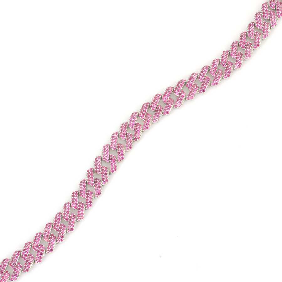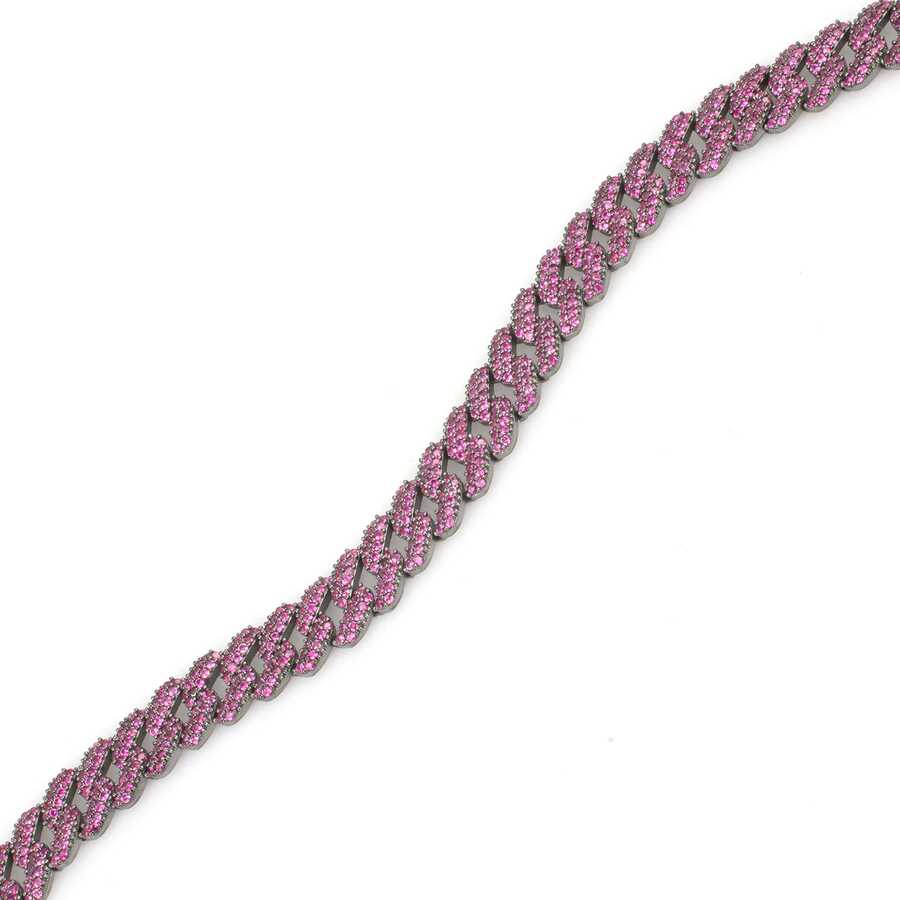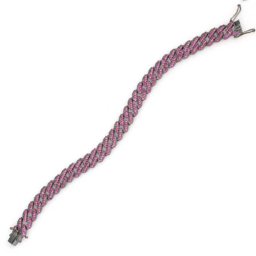 Bileklik 925 ayar gümüşten imal edilmiştir. Taşlı gurmet zincir bileklik 0,9 cm eninde ve 18 cm uzunluğundadır. Bileklik pembe zirkon taşlıdır. Gümüş bileklik 17,2 gram ağırlığındadır.