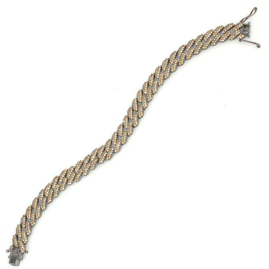 Bileklik 925 ayar gümüşten imal edilmiştir. Taşlı gurmet zincir bileklik 0,9 cm eninde ve 18 cm uzunluğundadır. Bileklik sarı zirkon taşlıdır. Gümüş bileklik 17,6 gram ağırlığındadır.