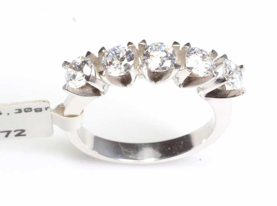 Beştaş yüzük 18 ayar altın madeninden üretilmiştir. Yüzük üzerinde 5 adet 0,80 karat ağırlığında H renk SI berraklığında beyaz pırlanta taş mevcuttur. Beş taş yüzük 5,3 gram ağırlığındadır. Sertifika için bizimle iletişime geçebilirsiniz.