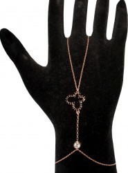 Rose Silver Star & Vav & Tulip Design Hand Ring Bracelet