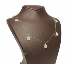 925 Ayar Gümüş 7 Sıra Yıldız Kolye, Beyaz