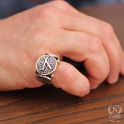 925 Ayar Gümüş ve Bronz Karışımı Dövmeli Çepni Boyu Sembolü Erkek Yüzük