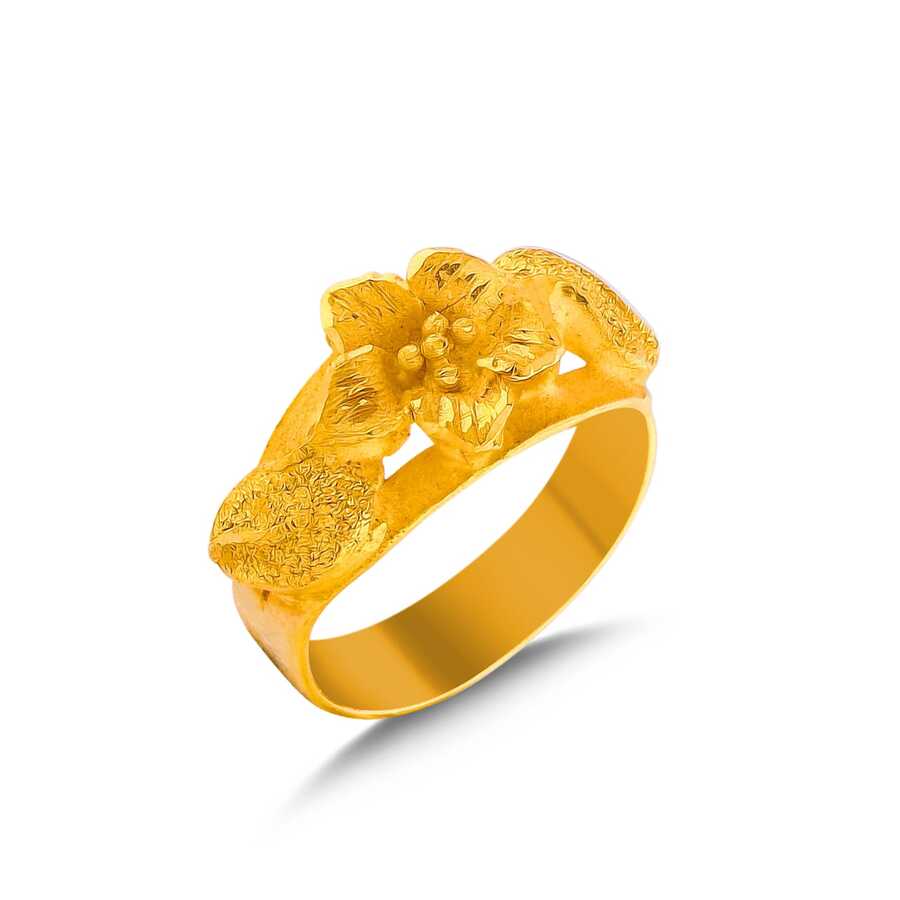 W22YZ009 - 22 Ayar Altın Mat ve Parlak Kalemli Kardelen Model Yüzük