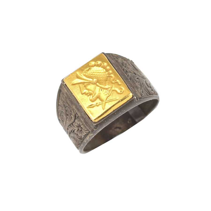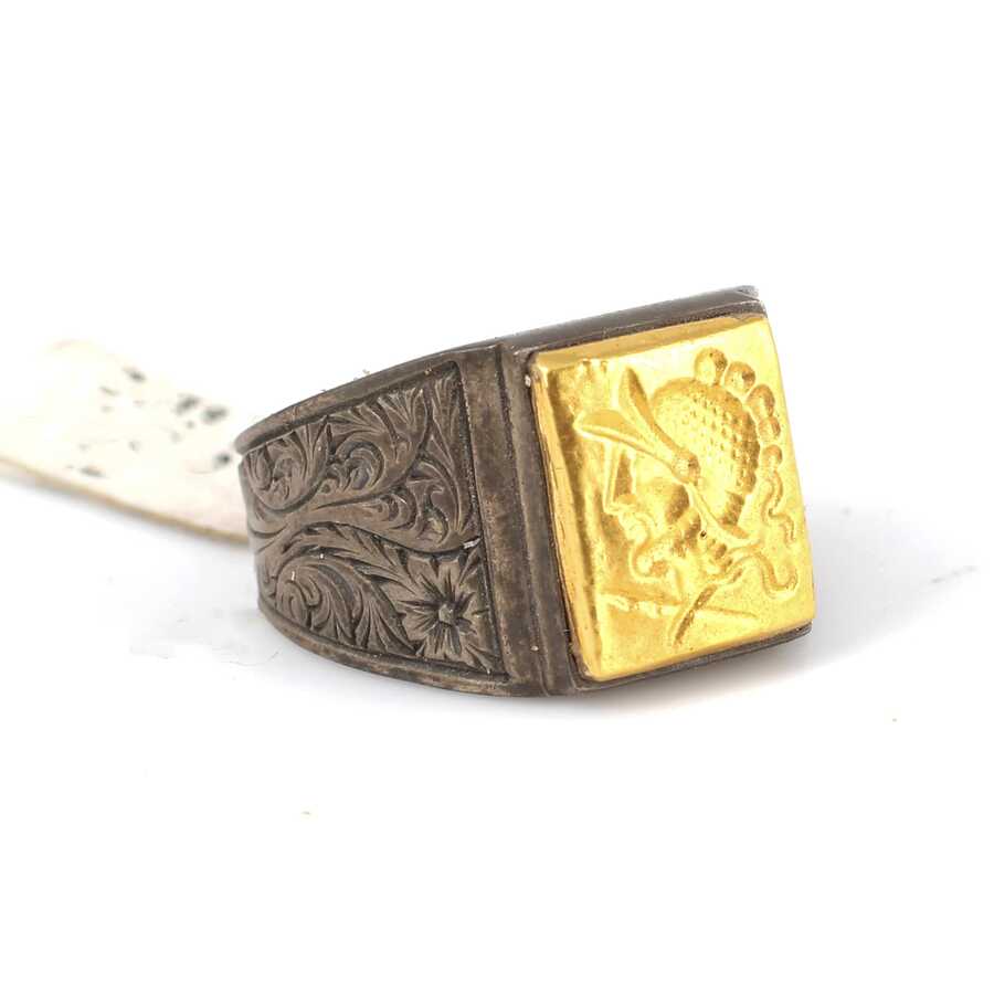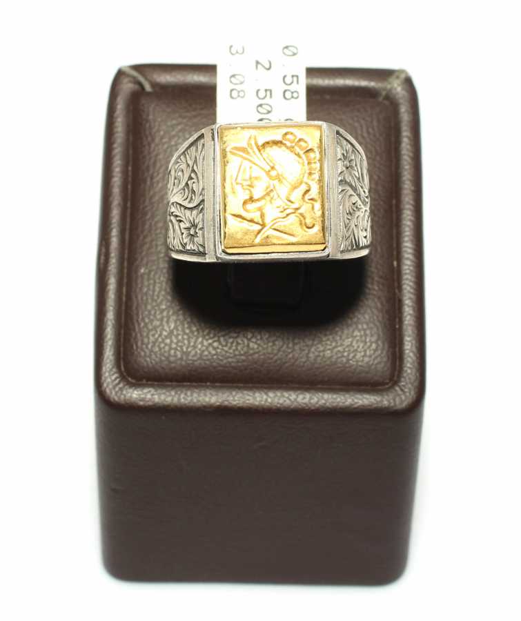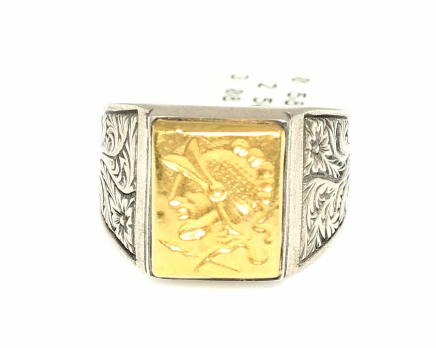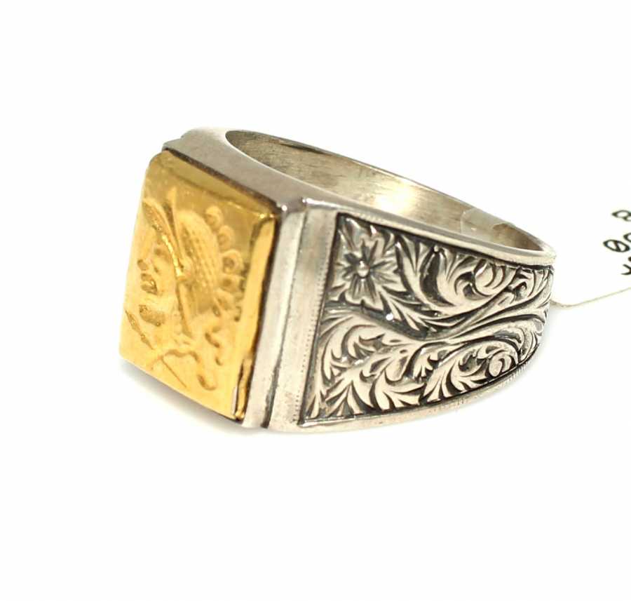Kare Truva Askeri 24 Ayar Altın ve Gümüş Yüzük