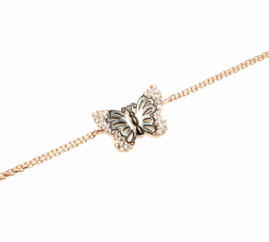 925 Sterling Silver, Rose Gold Vermeil, butterfly with white zircons, dainty chain bracelet - Length: 19+ 3 cm, Width: 1,13cm - Weight: 2,3 g
