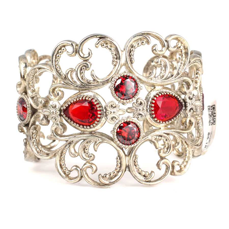 Bilezik 925 ayar gümüşten imal edilmiştir. Antik Bizans model bilezik 6 cm çapındadır. Antik Bizans döneminden esinlenilen altı açık ve sentetik yakut taşlıdır. Gümüş bilezik 65,35 gram ağırlığındadır.