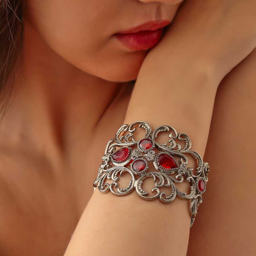 Kırmızı Yakut Taşlı Kalın Bilezik