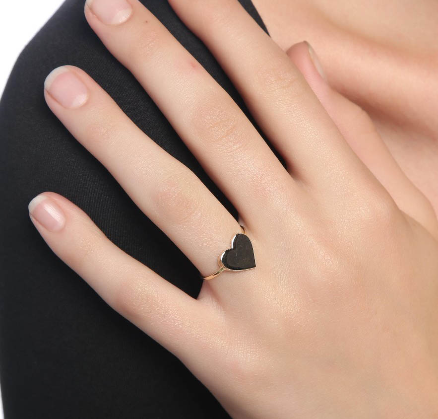 Yüzük 14 ayar altından üretilmiştir. Kalp model yüzük 10 ölçüdür. Tüm ölçüler yapılabilmektedir. Yüzük üzerindeki kalp 1 cm boyutlarındadır. Yüzük taşsızdır. Ağırlığı 2,88 gramdır.
