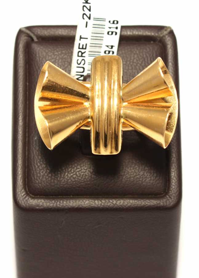 Yüzük 22 ayar altından üretilmiştir. Kurdele model yüzük 15 ölçüdür. Tüm ölçüler yapılabilmektedir. Yüzüğün üst kısmı 2 cm boyutlarındadır. Yüzük taşsızdır. Ağırlığı 9,9 gramdır.