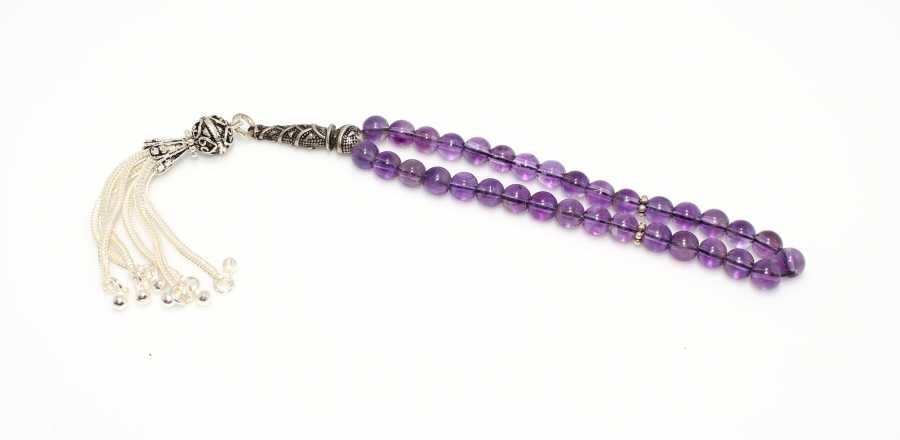 Küre Kesim Ametist Doğaltaş Gümüş Tesbih