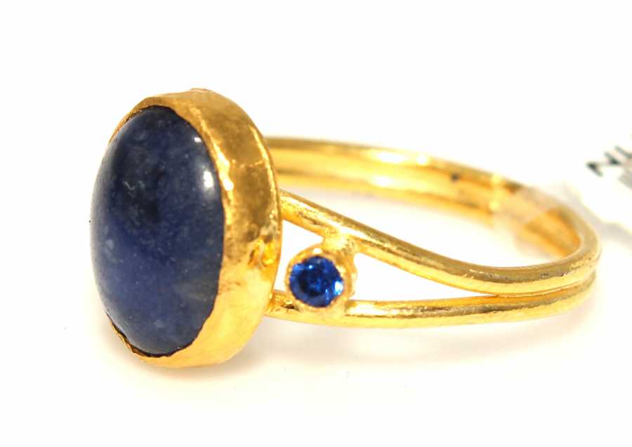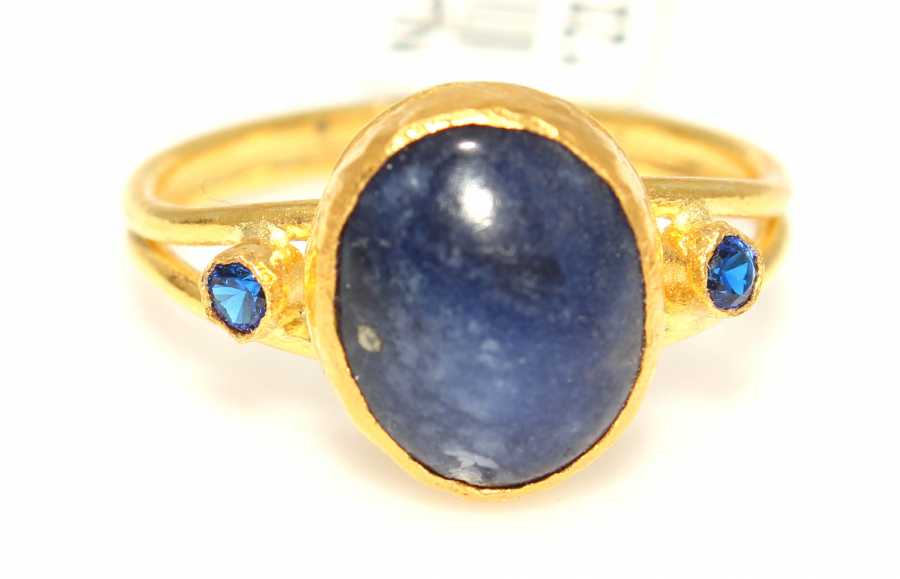 Yüzük 24 ayar altından üretilmiştir. El işi yüzük 20 ölçüdür. Tüm ölçüler yapılabilmektedir. Yüzüğün üst kısmı 1,3 cm boyutlarındadır. Yüzük lapis ve zirkon taşlıdır. Ağırlığı 5,6 gramdır.