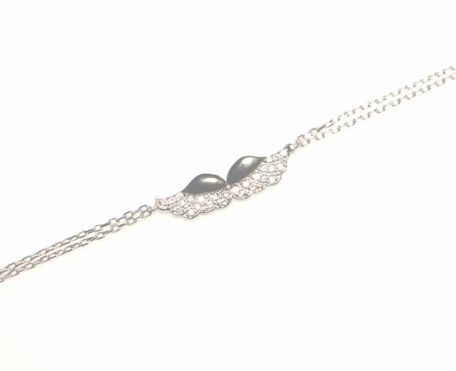 Bileklik 925 ayar gümüşten imal edilmiştir. Taşlı bileklik 22 cm uzunluğundadır. Melek kanadı figürü 0,5 cm boyutlarındadır. Bileklik çift zincirli ve zirkon taşlıdır. Gümüş bileklik 1,6 gram ağırlığındadır.