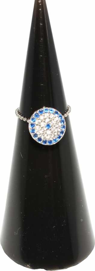 Yüzük 925 ayar gümüşten üretilmiştir. Nazar şeklinden oluşan zincir şeklindeki yüzük 5 ölçüdür. Tüm ölçüler yapılabilmektedir. Yüzük mavi ve beyaz zirkon taşlara sahiptir. Yüzük kolu zincirlidir. İster eklem yüzüğü ister yüzük olarak kullanabilirsiniz. Ağırlığı 0,95 gramdır.