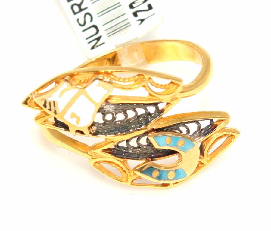 Yüzük 22 ayar altından üretilmiştir. Nuh'un gemisi model yüzük 14 ölçüdür. Tüm ölçüler yapılabilmektedir. Yüzüğün üst kısmı 1,6 cm boyutlarındadır. At kafası ve nal figürleri eklenerek tasarlanmıştır. Yüzük taşsızdır. Ağırlığı 4,8 gramdır.