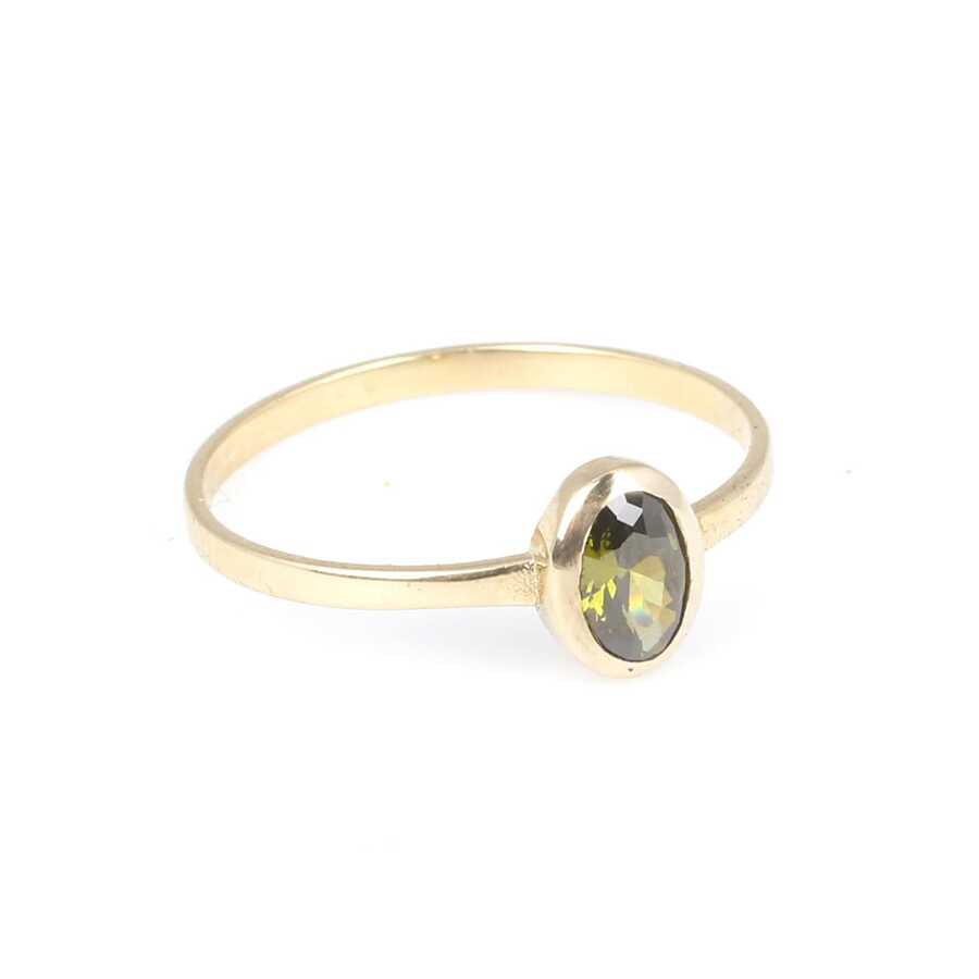 Yüzük 14 ayar altından üretilmiştir. Oval model yüzük 10 ölçüdür. Tüm ölçüler yapılabilmektedir. Yüzüğün üst kısmı 1,0 cm'ye 0,4 cm boyutlarındadır. Yüzük peridot taşlıdır. Ağırlığı 1,1 gramdır.