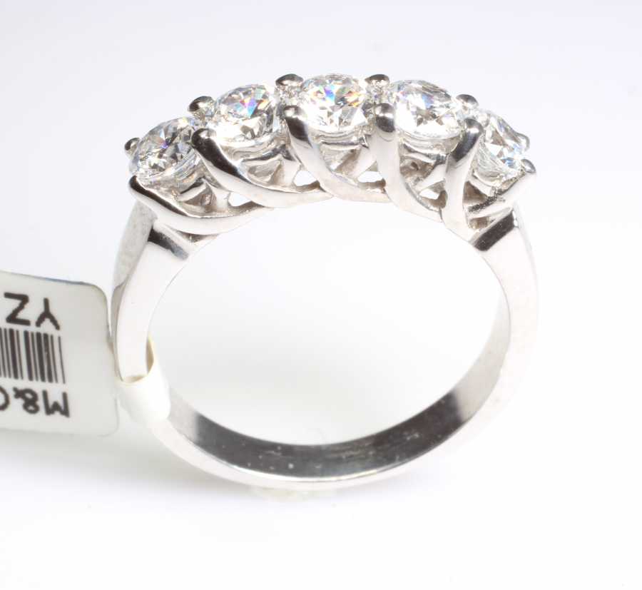Beştaş yüzük 18 ayar altın madeninden üretilmiştir. Yüzük üzerinde 5 adet 0,80 karat ağırlığında G renk VS berraklığında beyaz pırlanta taş mevcuttur. Beş taş yüzük 6,15 gram ağırlığındadır. Sertifika için bizimle iletişime geçebilirsiniz.