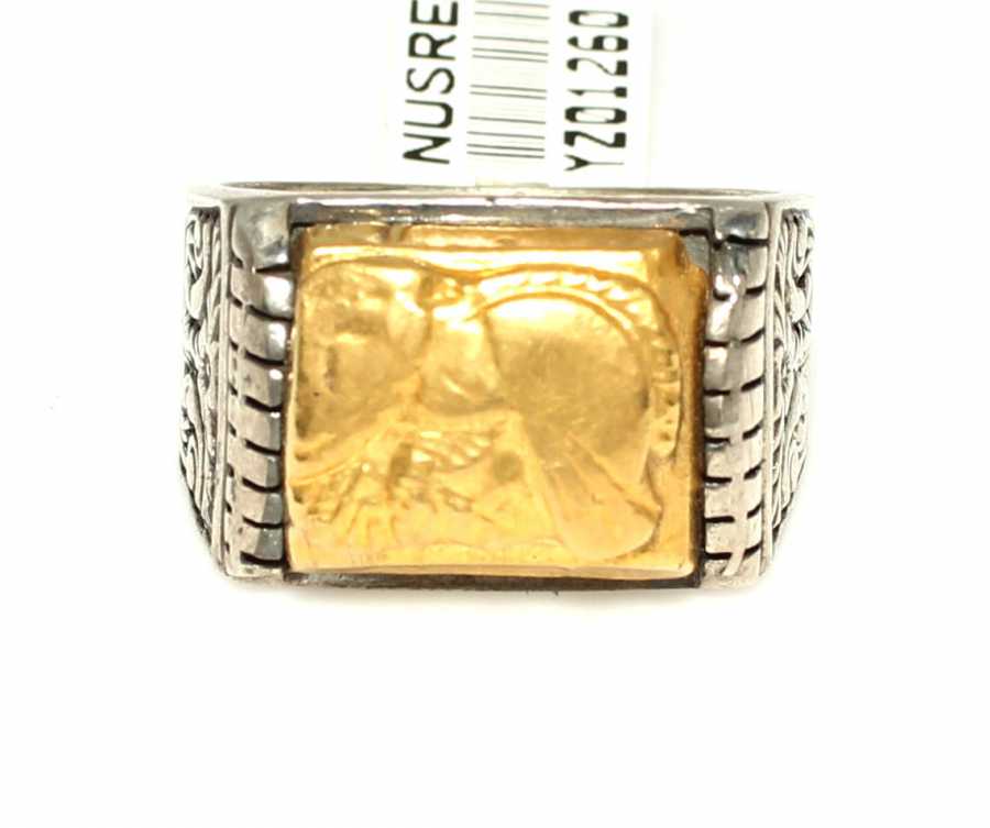24 Ayar Altın Gümüş Miğfer Savaşçısı Resimli Yüzük