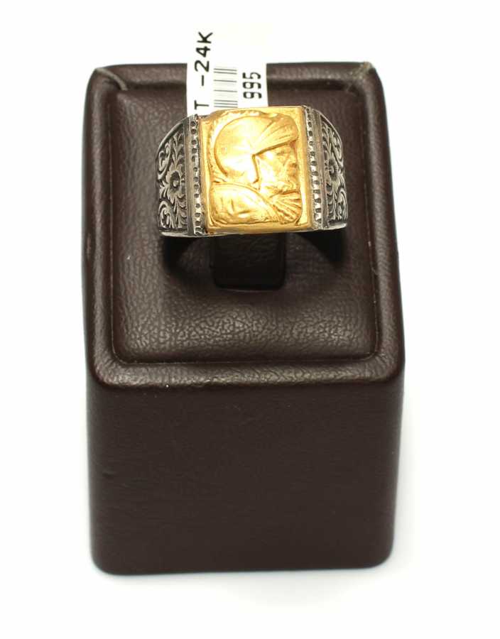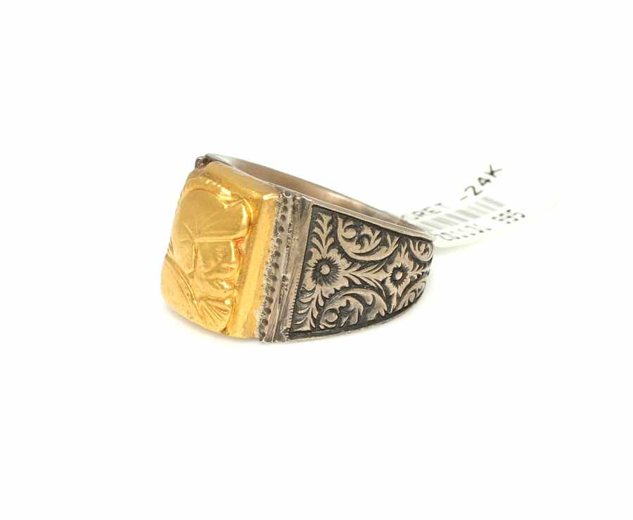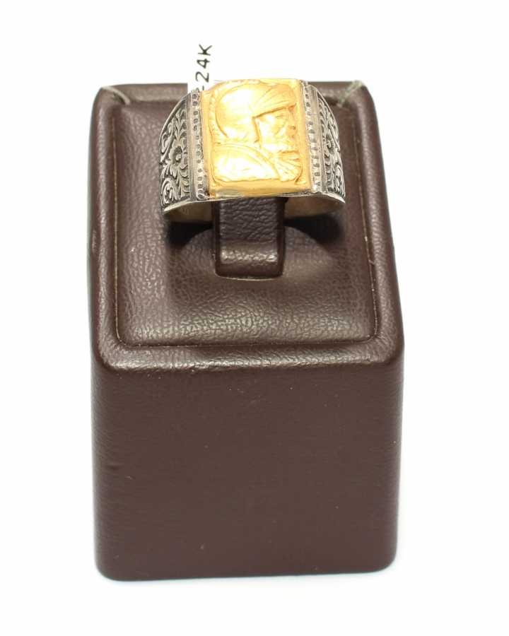 24 Ayar Altın ve Gümüş Savaşçı Desenli Yüzük