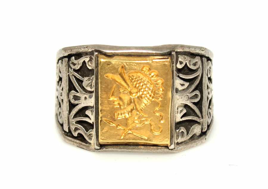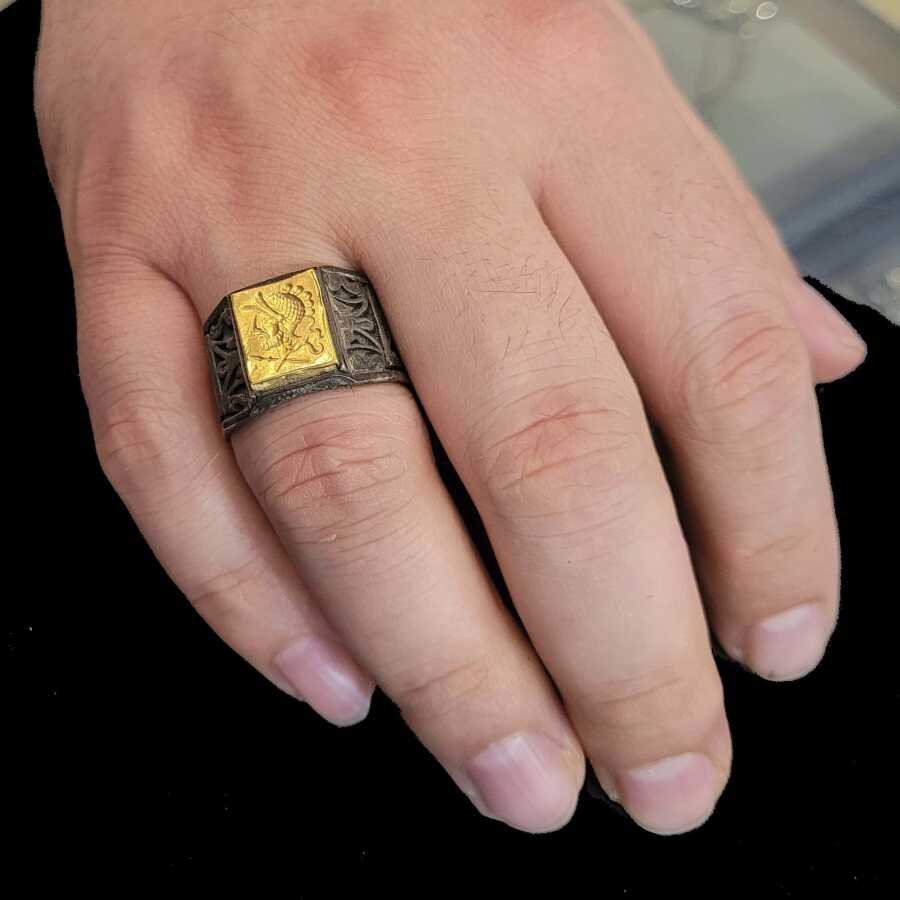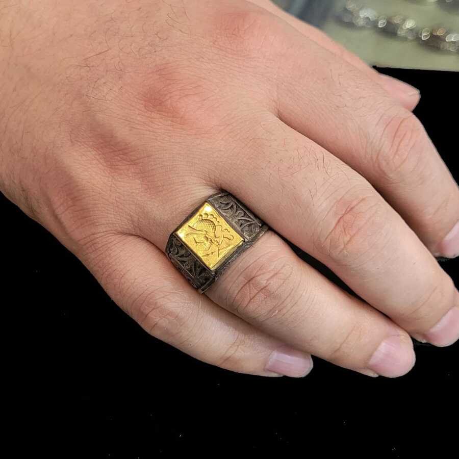 Truva Askeri 24 Ayar Altın Gümüş Yüzük