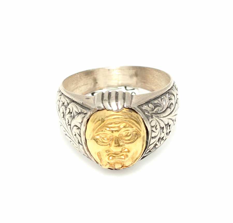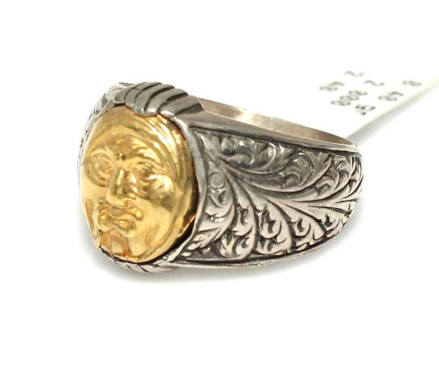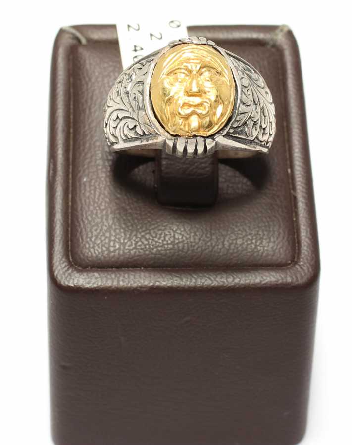 24 ayar altın ve 925 ayar gümüş yüzük ölçüsü: 20 x 1,5 cm`dir. Gümüş yüzük, altın resimlidir. Gramı: 0,45