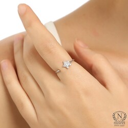 925 Ayar Gümüş Yüzen Balıklar Yüzük, Beyaz