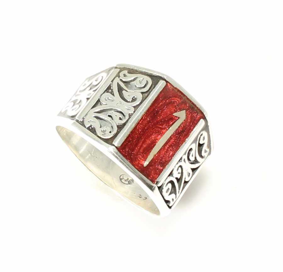 Notify me when its in stockSilver Elif Arabic Letter Red Enamelled Men's Ring