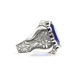 Yüzük 925 ayar gümüşten üretilmiştir. Yüzüğün üzerinde el kalemi atılarak tasarlanmıştır. Taşlı yüzük 2,5 cm'ye 2,3 cm boyutlarındadır. Resimdeki yüzük 25 ölçüdür, ancak tüm ölçüler özel olarak yapılabilmektedir. Yüzük sentetik safir taşlıdır. Ağırlığı 16,43 gramdır.