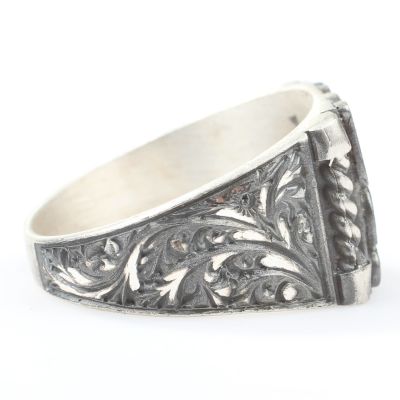 Yüzük 925 ayar gümüşten üretilmiştir. Yüzüğün üzerinde el kalemi atılarak tasarlanmıştır. Taşlı yüzük 1,3 cm boyutlarındadır. Resimdeki yüzük 24 ölçüdür, ancak tüm ölçüler özel olarak yapılabilmektedir. Yüzük zirkon taşlıdır. Ağırlığı 10,22 gramdır.