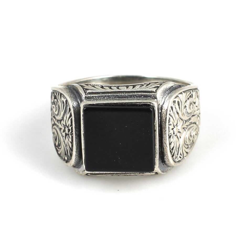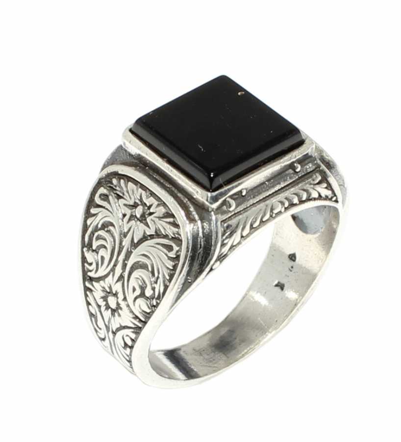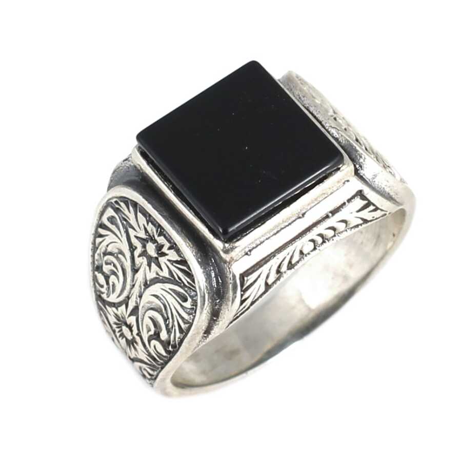 Silver Men Ring with Square Onyx