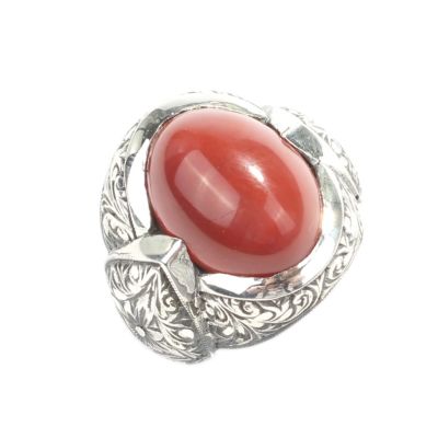 Sterling Silver Hand Carved Men's Ring with Agate