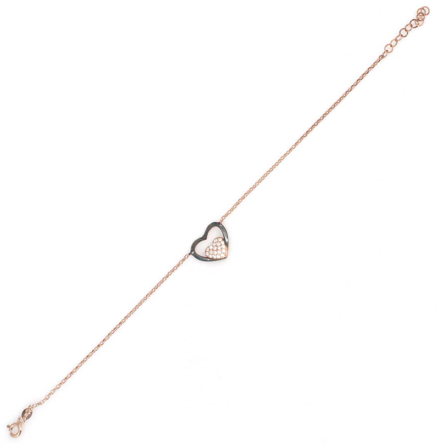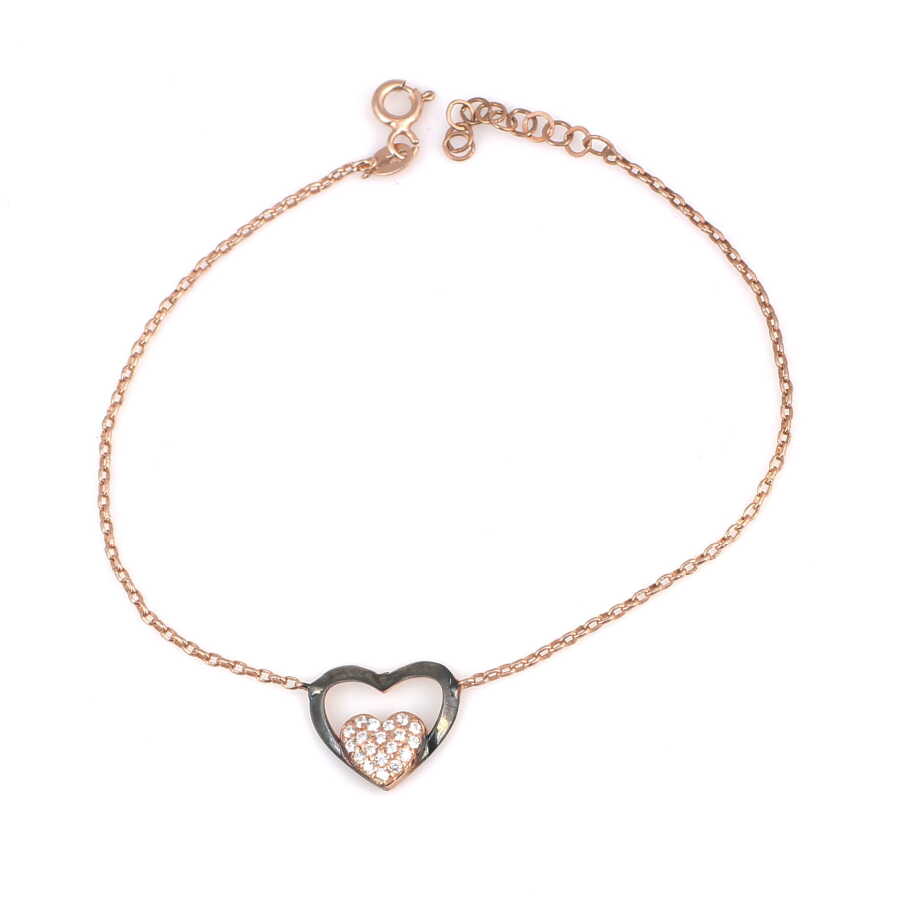 The bracelet is made of 925 sterling silver. The stone bracelet is 21 cm long. The heart figure is 1.2 cm in size. The bracelet has zircon stones. Silver bracelet weighs 1,7 grams.