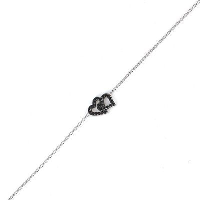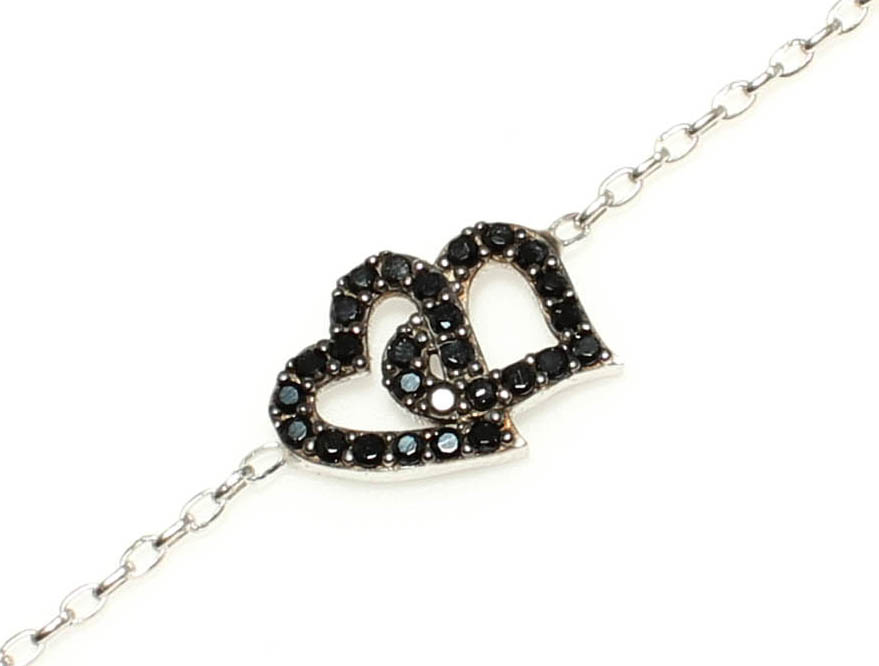 The bracelet is made of 925 sterling silver. The stone bracelet is 19 cm long. The double heart model figure measures 1.0 cm by 1.4 cm. The bracelet has zircon stones. Silver bracelet weighs 1,64 grams.