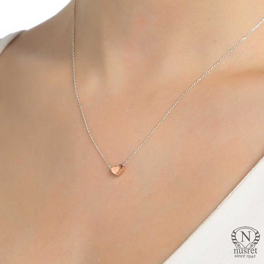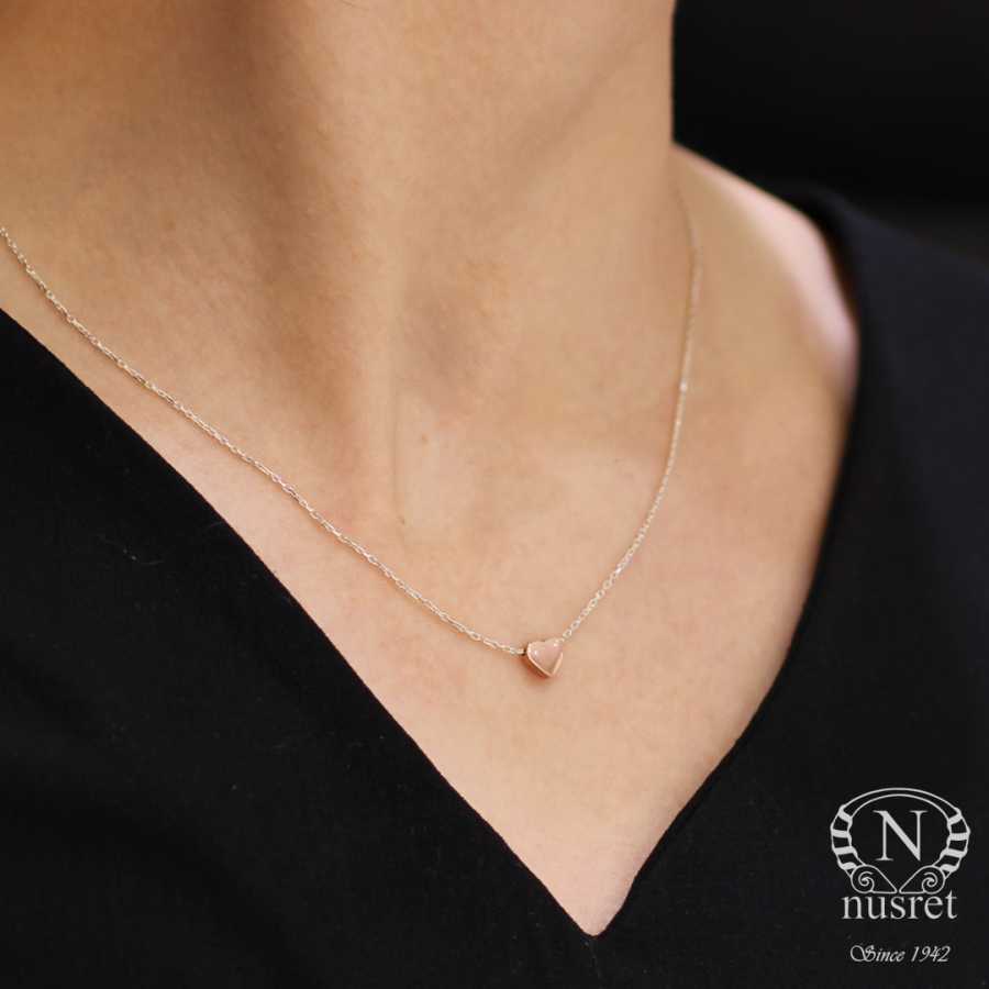 Gümüş kolye 925 ayar gümüşten yapılmıştır. Kalp kolye 0,7 cm'ye 0,5 cm boyutlarındadır. Zincir 45 cm uzunluğundadır. Kolye taşsızdır. Kalp rose rodajlı ve zincir de gümüş rodajlıdır. Ağırlığı 1,85 gramdır.