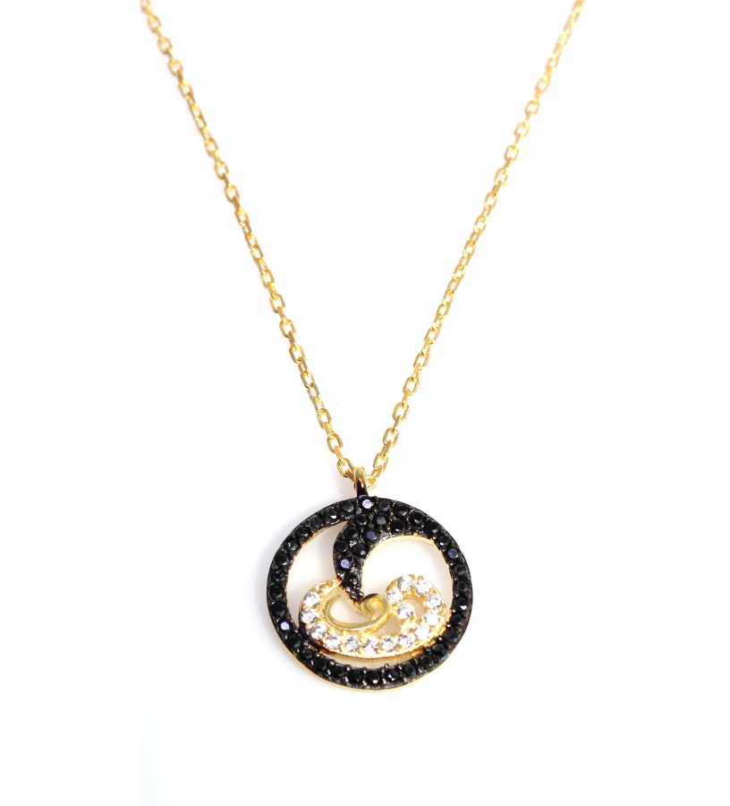 Notify me when its in stockCrafted from premium 925 sterling silver, this sophisticated necklace unites the crescent moon and the Vav letter in a harmonious circular frame. The crescent moon represents renewal, guidance, and divine illumination, while the Vav symbolizes humility and life’s continuous spiritual journey. The contrast of deep black and brilliant white zircon stones creates a captivating balance, symbolizing harmony between light and shadow.