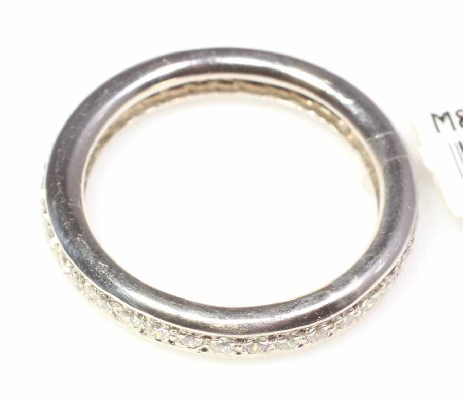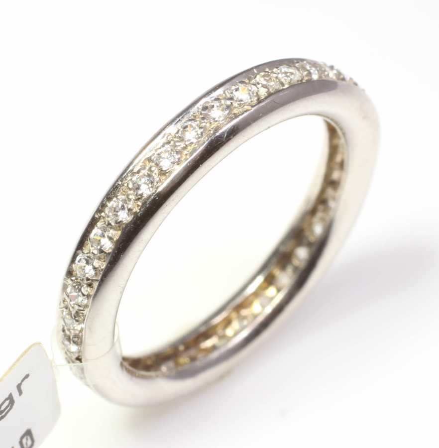 Tamtur yüzük 18 ayar altın madeninden üretilmiştir. Yüzük üzerinde 40 adet 0,31 karat ağırlığında H renk VS berraklığında beyaz pırlanta taş mevcuttur. Tam tur yüzük 4,76 gram ağırlığındadır. Sertifika için bizimle iletişime geçebilirsiniz.