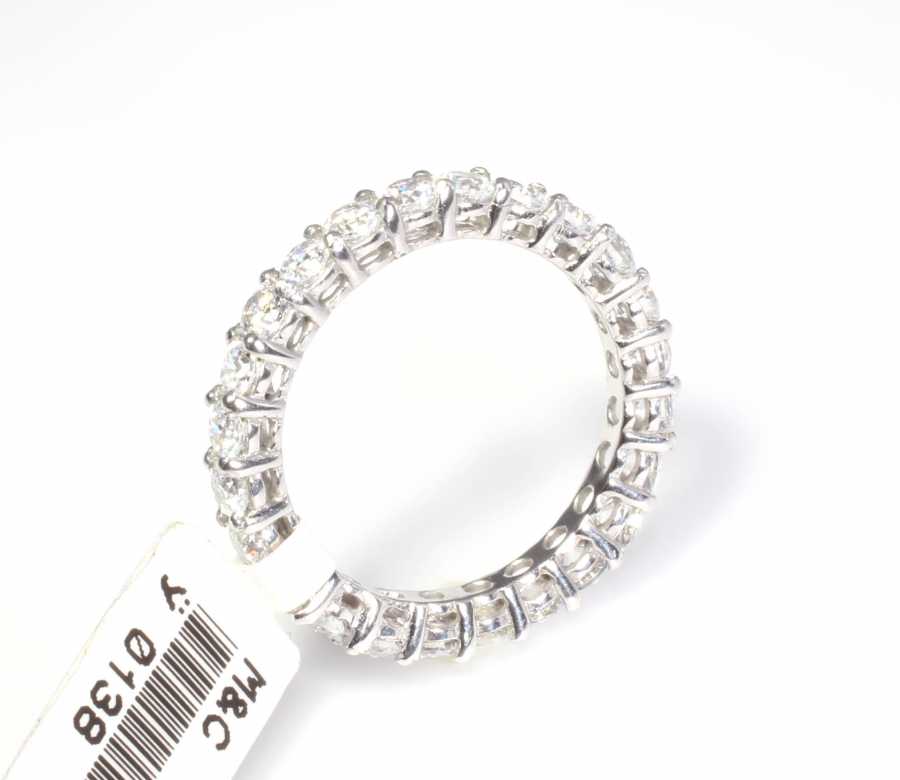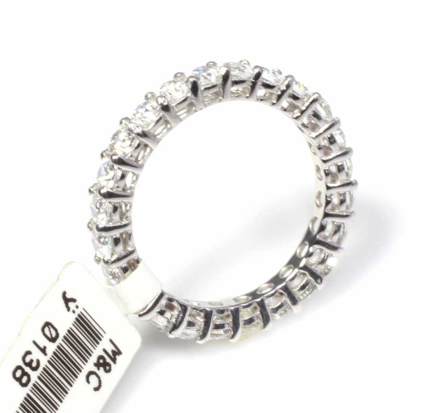 Tamtur yüzük 18 ayar altın madeninden üretilmiştir. Yüzük üzerinde 24 adet 3,30 karat ağırlığında H renk VS berraklığında beyaz pırlanta taş mevcuttur. Tam tur yüzük 2,95 gram ağırlığındadır. Sertifika için bizimle iletişime geçebilirsiniz.