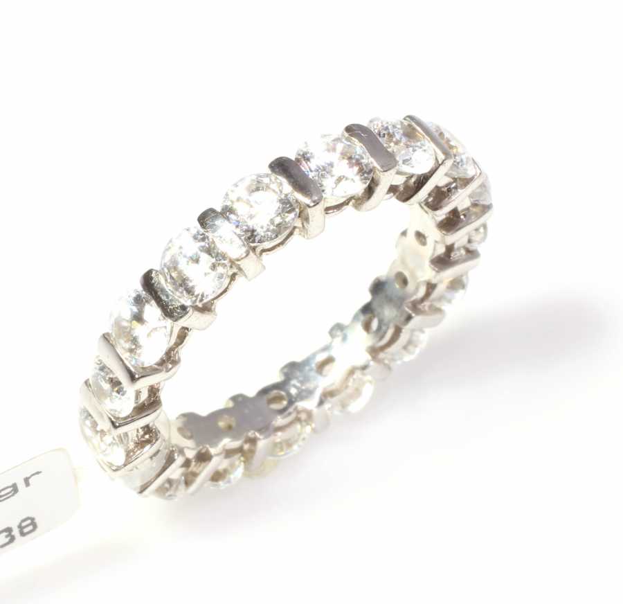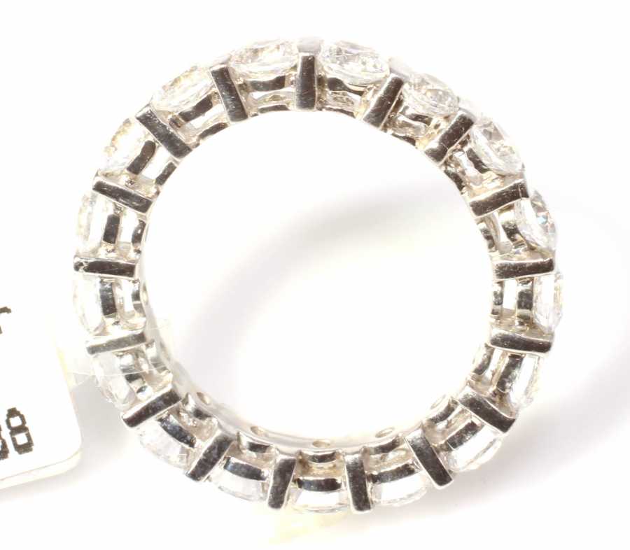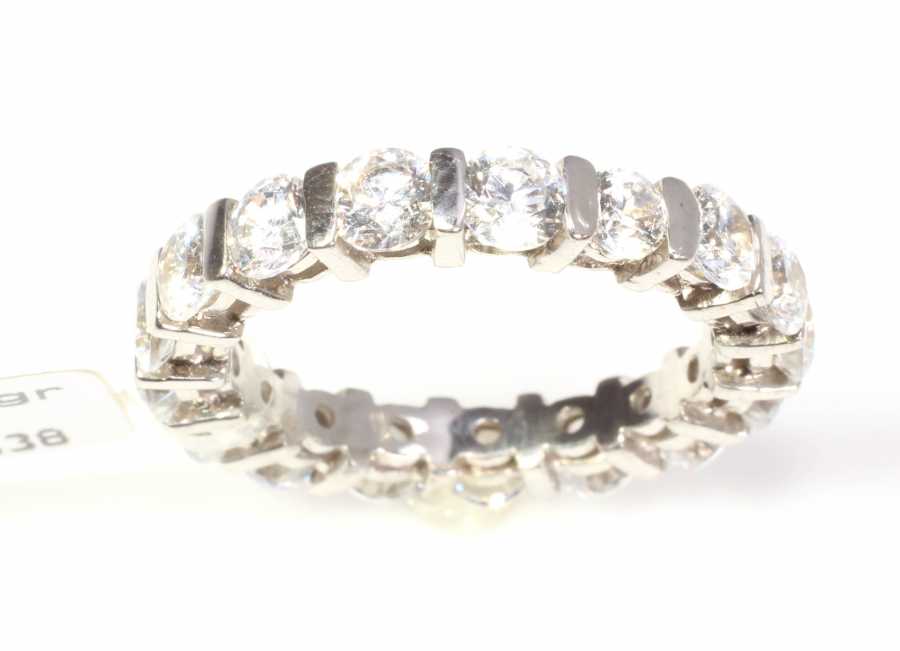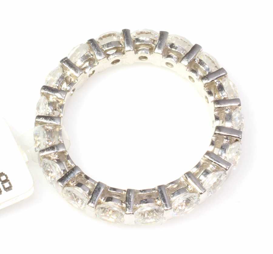 Tamtur yüzük 18 ayar altın madeninden üretilmiştir. Yüzük üzerinde 17 adet 3,00 karat ağırlığında H renk SI berraklığında beyaz pırlanta taş mevcuttur. Tam tur yüzük 5,11 gram ağırlığındadır. Sertifika için bizimle iletişime geçebilirsiniz.