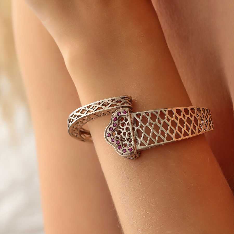 Taşlı 925 Ayar Gümüş Ajur Bilezik