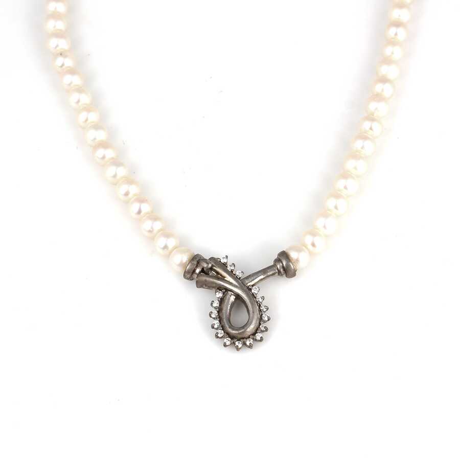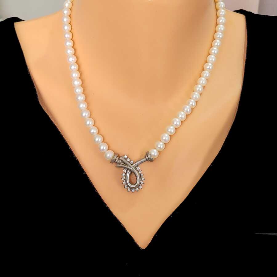 925 Ayar Gümüş 42 cm taşlı tokaya takılı inci kolye Gramı: 31