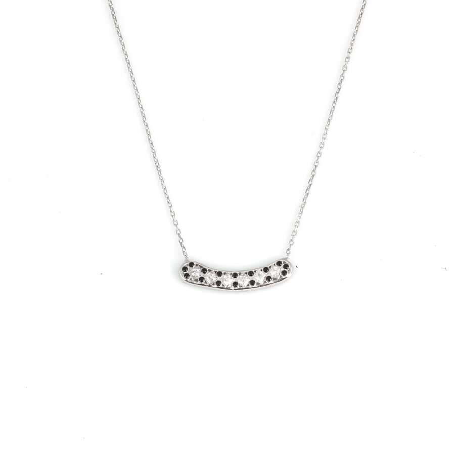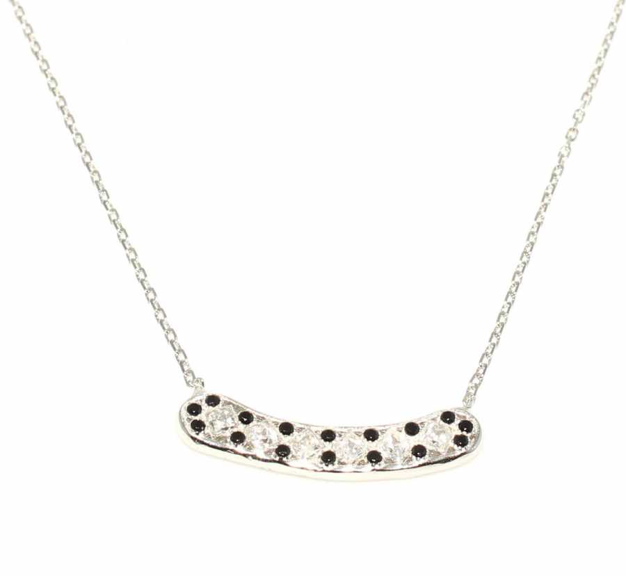 925 Ayar Gümüş Taşlı Kolye, Beyaz - Beyaz Siyah Taş