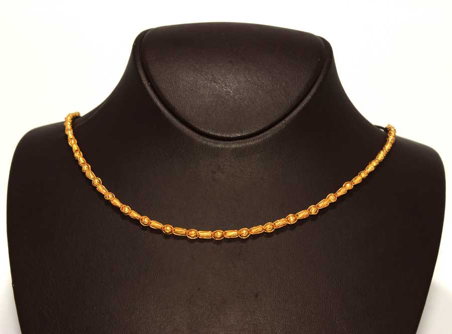 Notify me when its in stock Altın kolye 22 ayar altından üretilmiştir. Toplu başak zincir kolye 51 cm uzunluğundadır. Zincir 0,3 mm kalınlığındadır. El işi olup toplar ve spiral kafes içerisine alınarak birbirine kaynatılmıştır. Diğer zincir uzunlukları için bizimle iletişime geçebilirsiniz. Kolye taşsızdır. Ağırlığı 23,45 gramdır. Verilen gramlar yaklaşıktır, değişebilir.