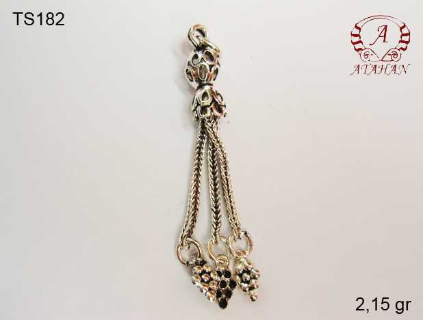 925 Ayar Gümüş Yaprak Tekli Püskül, Spiral Desenli Tepelik