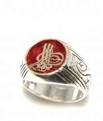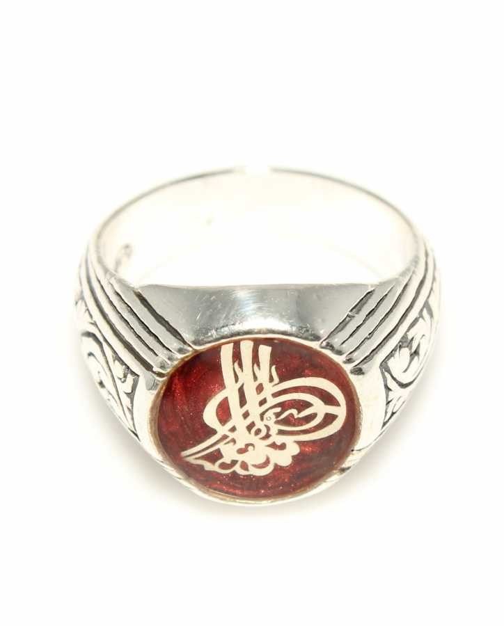 Yüzük 925 ayar gümüşten üretilmiştir. Osmanlı Tuğrası figürlü yüzüğün üst kısmı kırmızı renk mine yapılmıştır. Resimdeki yüzük 20 ölçüdür, ancak tüm ölçüler yapılabilmektedir. Yüzük taşsızdır. Ağırlığı 9,85 gramdır.