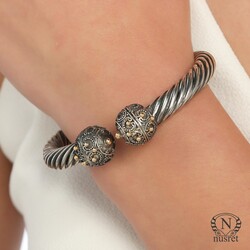 925 Ayar Gümüş Fiyonk Kaşlı 6 Tel Burma Bilezik