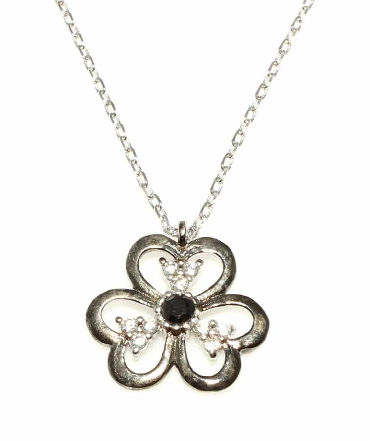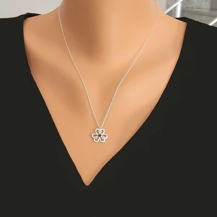 Gelince Haber Ver Doğadan ilham alan bu özel tasarım 925 ayar gümüş çiçek kolye, dengeli ve zarif detaylarıyla öne çıkar. Ortasında yer alan siyah taş kolyeye derinlik ve karakter kazandırırken, çiçek yapraklarındaki beyaz taşlar tasarımı ışıltılı ve şık bir görünüme taşır.