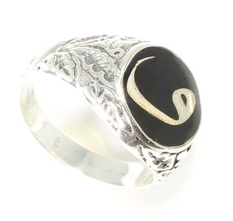 Vav harfi; tevazu, teslimiyet ve içsel gücün sembolüdür. Siyah mineli yuvarlak zemin üzerine işlenen Vav motifi, bu 925 ayar gümüş erkek yüzüğe derinlik ve karakter kazandırır. Siyah mine ışıkla birlikte güçlü bir kontrast oluştururken, yan yüzeylerdeki Osmanlı esintili motifler yüzüğe geleneksel bir ruh katar.