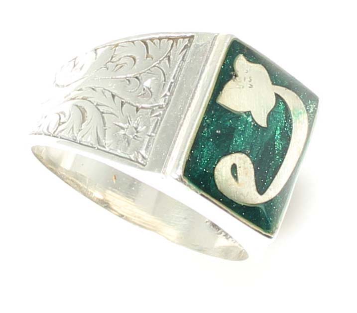 Yüzük 925 ayar gümüşten üretilmiştir. Vav harfi model yüzüğün üst kısmı 1,4 cm'ye 1,3 cm byutlarındadır. Yüzüğün üzerine yeşil renk mine yapılmıştır. Resimdeki yüzük 22 ölçüdür, ancak tüm ölçüler yapılabilmektedir. Yüzük taşsızdır. Ağırlığı 6,81 gramdır.
